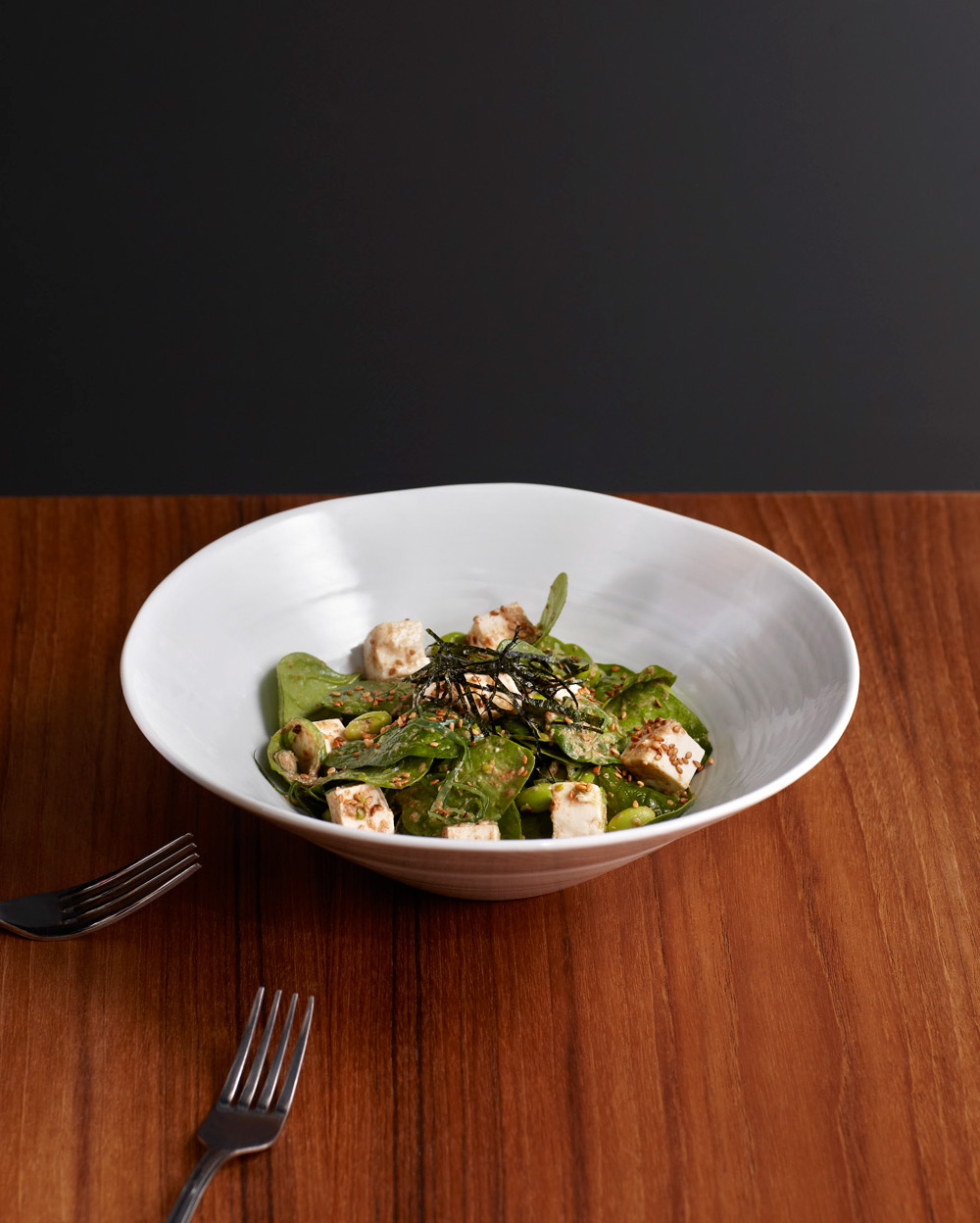 Baby spinach, soft tofu, Japanese seaweed, edamame and homemade sesame dressing.