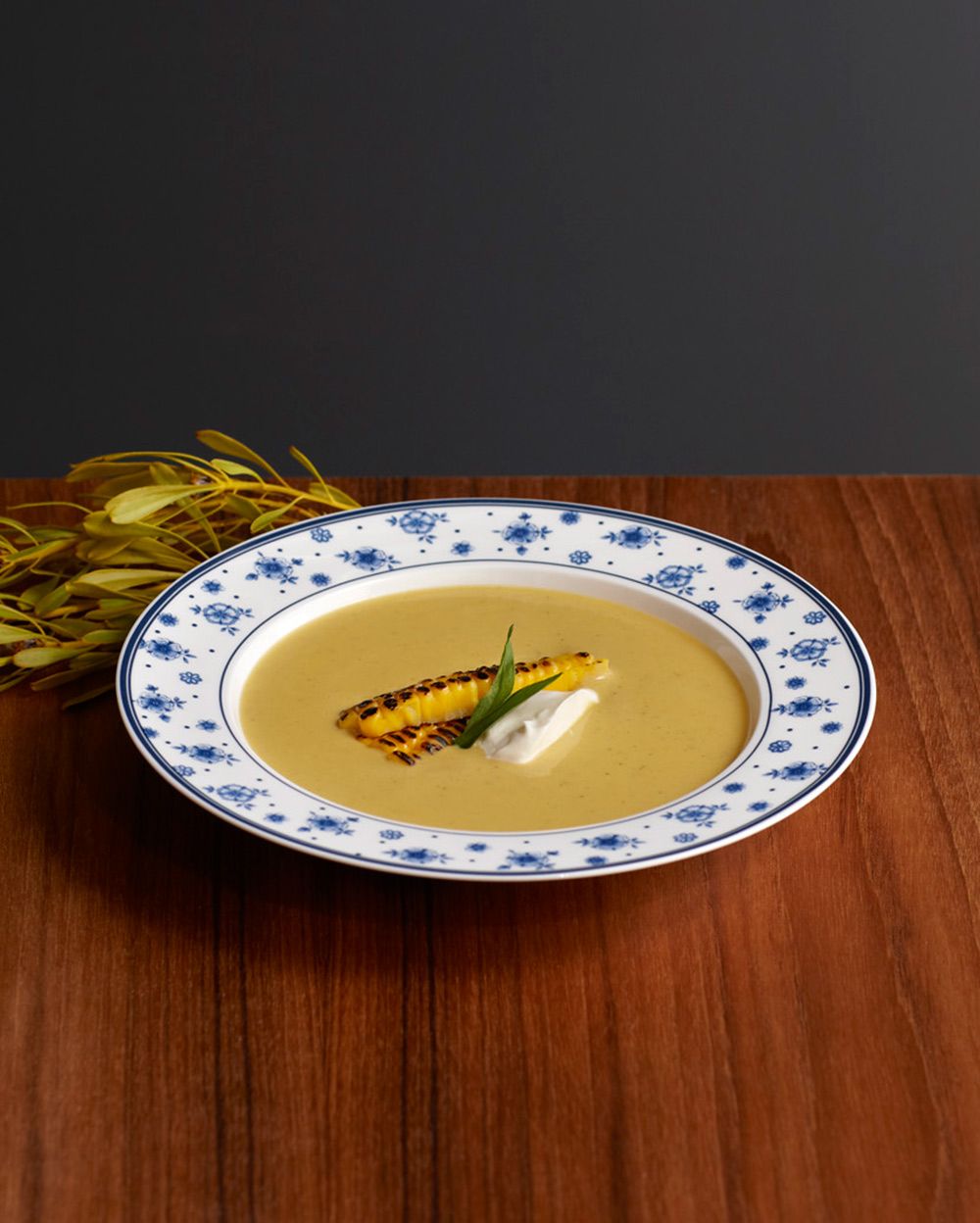 Chinese sweet corn with twists of grilled sweet corn and crème fraiche.